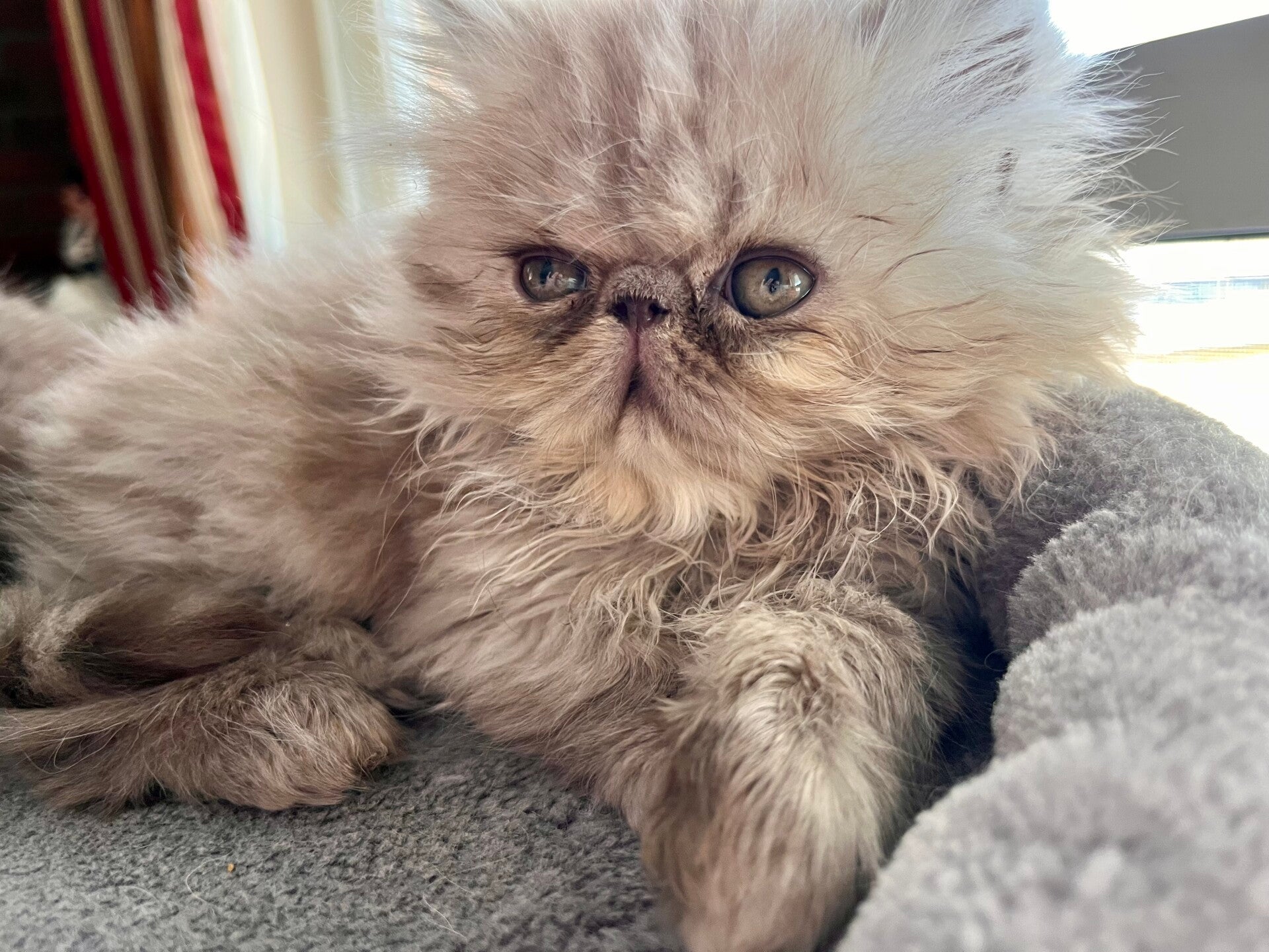 The Exotic Shorthair is a cat breed with the affectionate and calm personality of a Persian but with a short, dense, plush coat that requires less grooming. They have a round face, large eyes, and a stocky body, and are known for being gentle, playful, and adaptable to various living situations. Due to their flat faces, they can be prone to certain health issues like breathing difficulties and eye problems, and they need regular cleaning of their eyes.